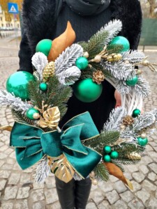 Poți opta pentru coronițe din brad natural, care aduc cu ele mirosul specific al iernii sau pentru unele cu detalii elegante, precum panglici roșii, crenguțe uscate și ornamente metalice care strălucesc sub lumina rece a iernii.
