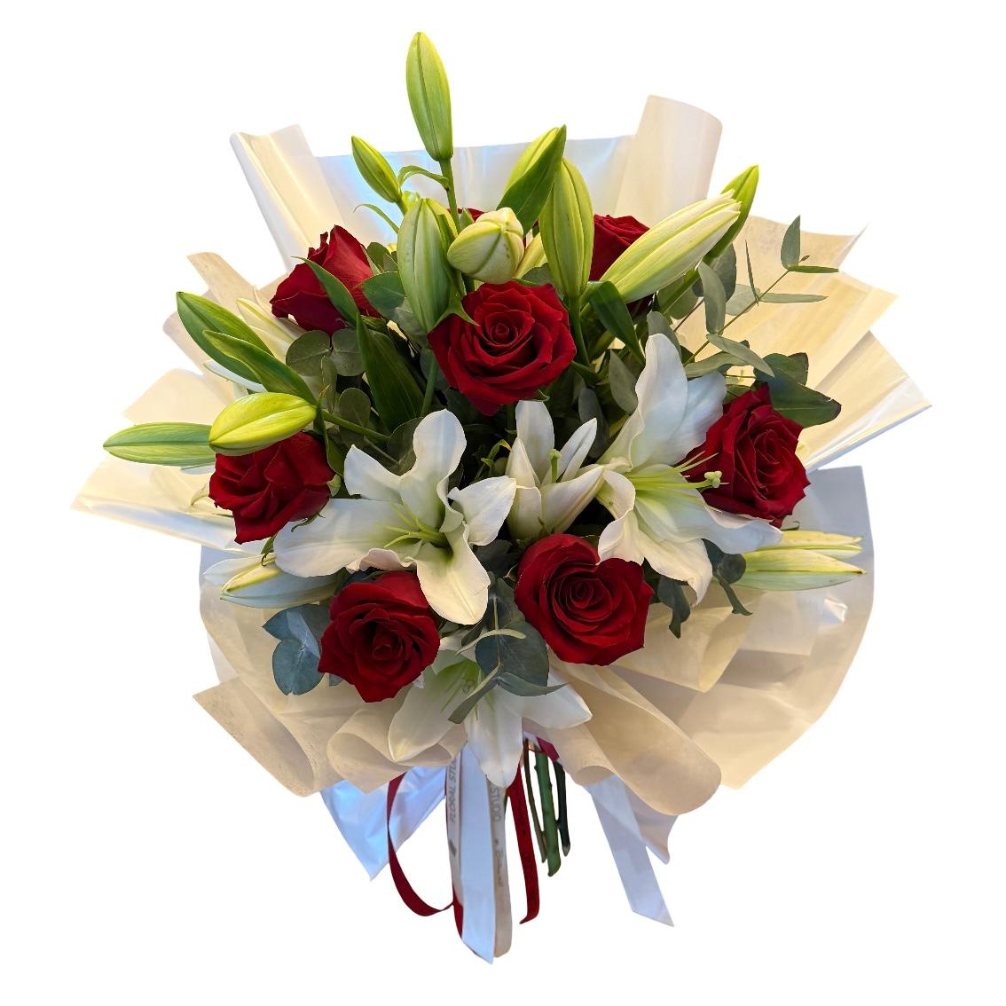 Fire & Ice este buchetul perfect pentru a transmite un mesaj de apreciere și dragoste. Această combinație unică de flori aduce împreună eleganța crinilor albi și pasiunea trandafirilor roșii, evocând emoții puternice și momente de neuitat. Fie că vrei să sărbătorești o ocazie specială sau să aduci un zâmbet pe chipul cuiva drag, buchetul Fire & Ice este alegerea ideală.