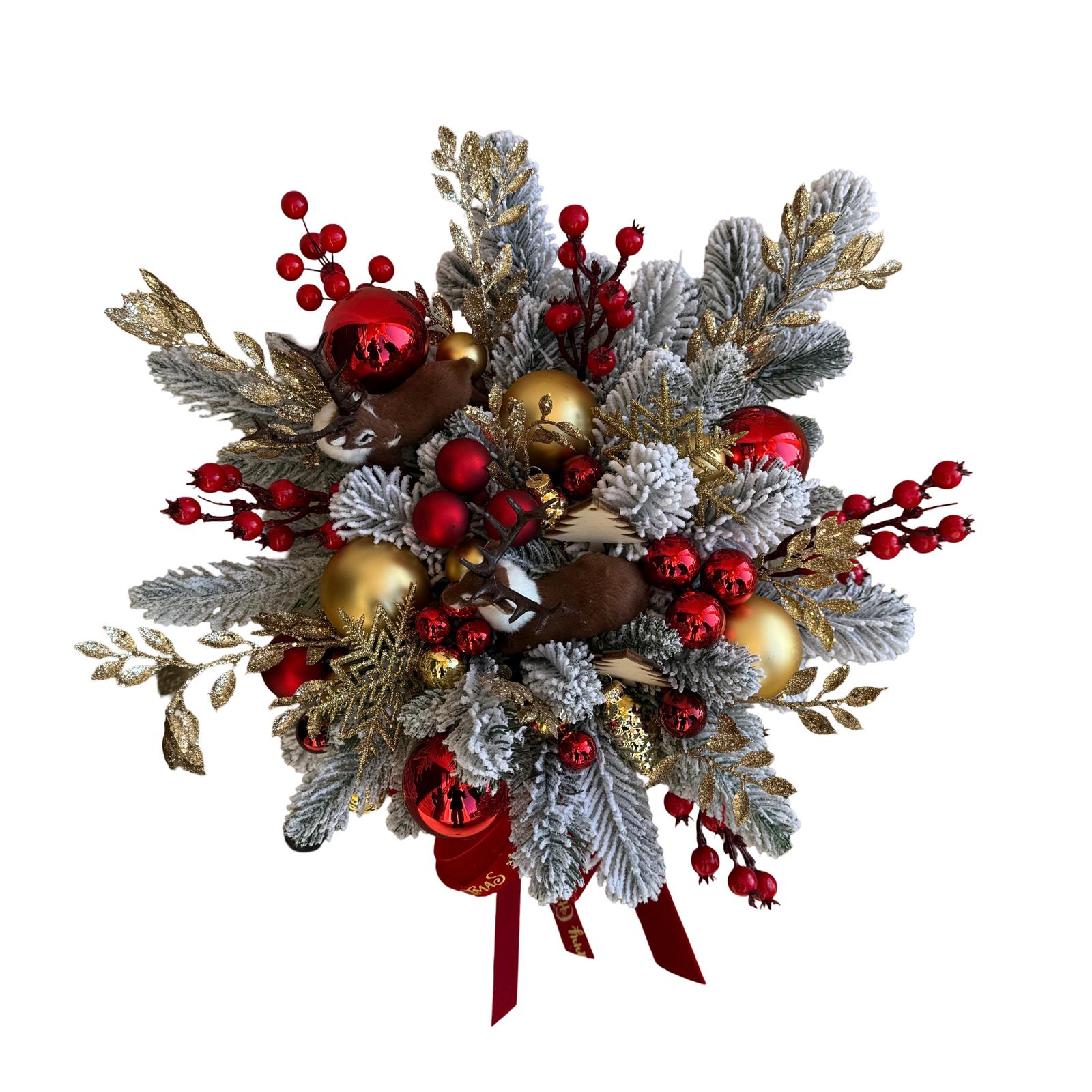- Accesorii decorative artificiale de Crăciun: Elementele care fac acest aranjament să fie cu adevărat special.