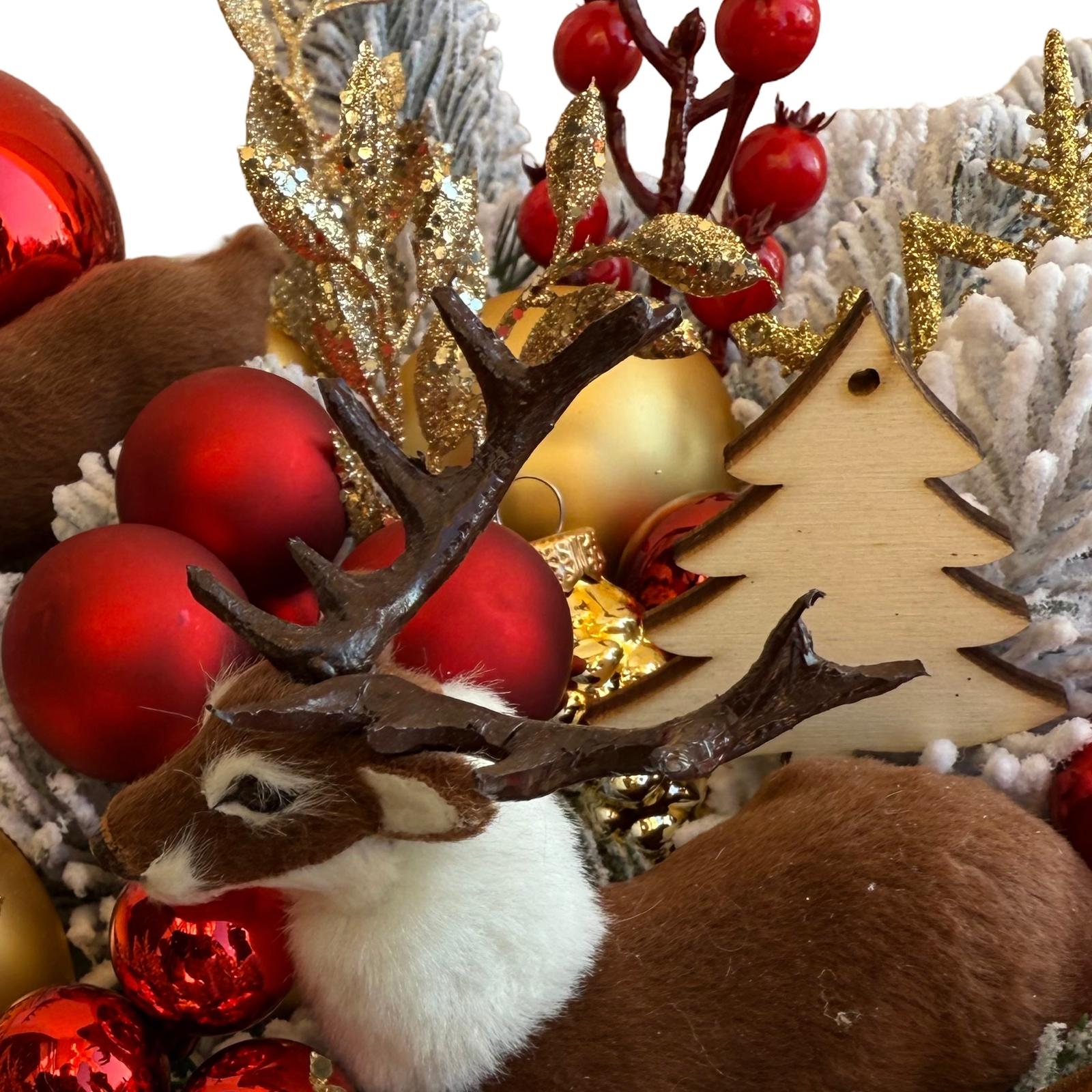 Fiecare element al acestui aranjament are o semnificație aparte. Cerbii simbolizează noblețea și frumusețea naturii, în timp ce bradul artificial evocă tradițiile de Crăciun și bucuria reunirii cu cei dragi.