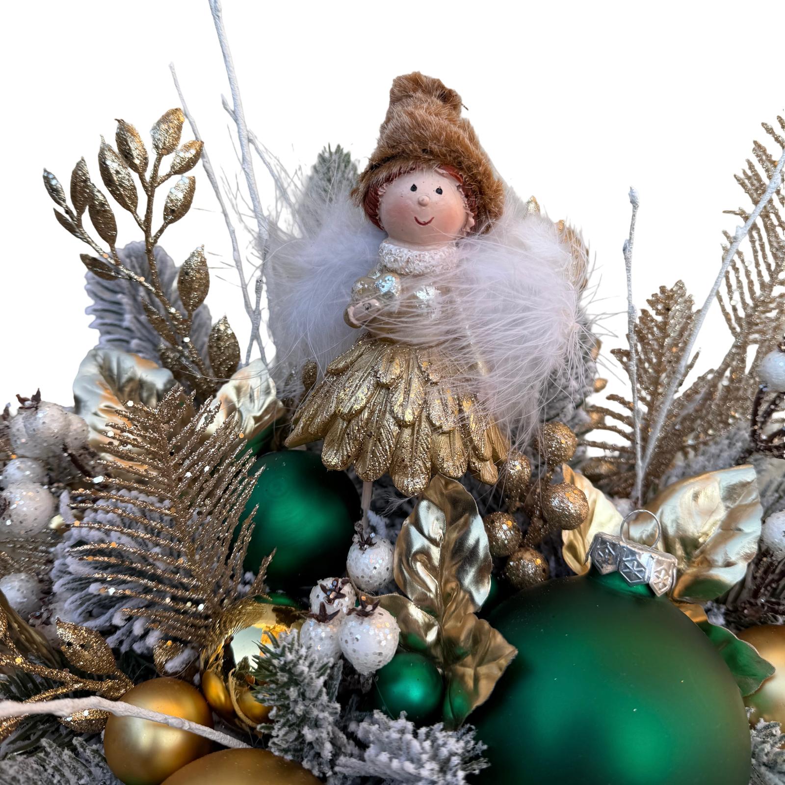 Deși aranjamentul conține elemente artificiale, fiecare detaliu simbolizează magia și frumusețea sărbătorilor. Zâna aduce un sentiment de fantezie și bucurie, iar bradul artificial nins simbolizează speranța și reînnoirea.
