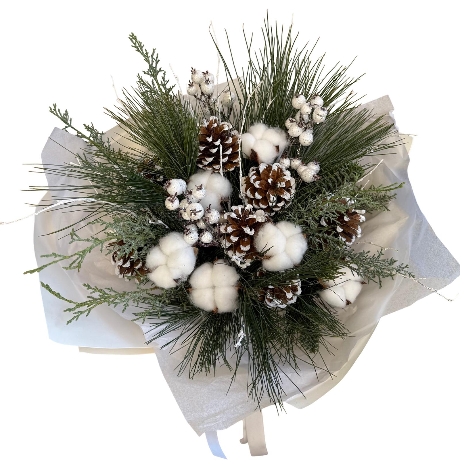 Acest buchet alb cu bumbac și conuri este inspirat de frumusețea iernii, aducând în casele noastre o atmosferă caldă și festivă. Cu un amestec de texturi și nuanțe, fiecare element al aranjamentului este menit să evoce sentimentul de confort și bucurie. Fie că îl dăruiești cu ocazia sărbătorilor de iarnă sau ca un gest spontan de apreciere, acest buchet transmite emoție și rafinament.