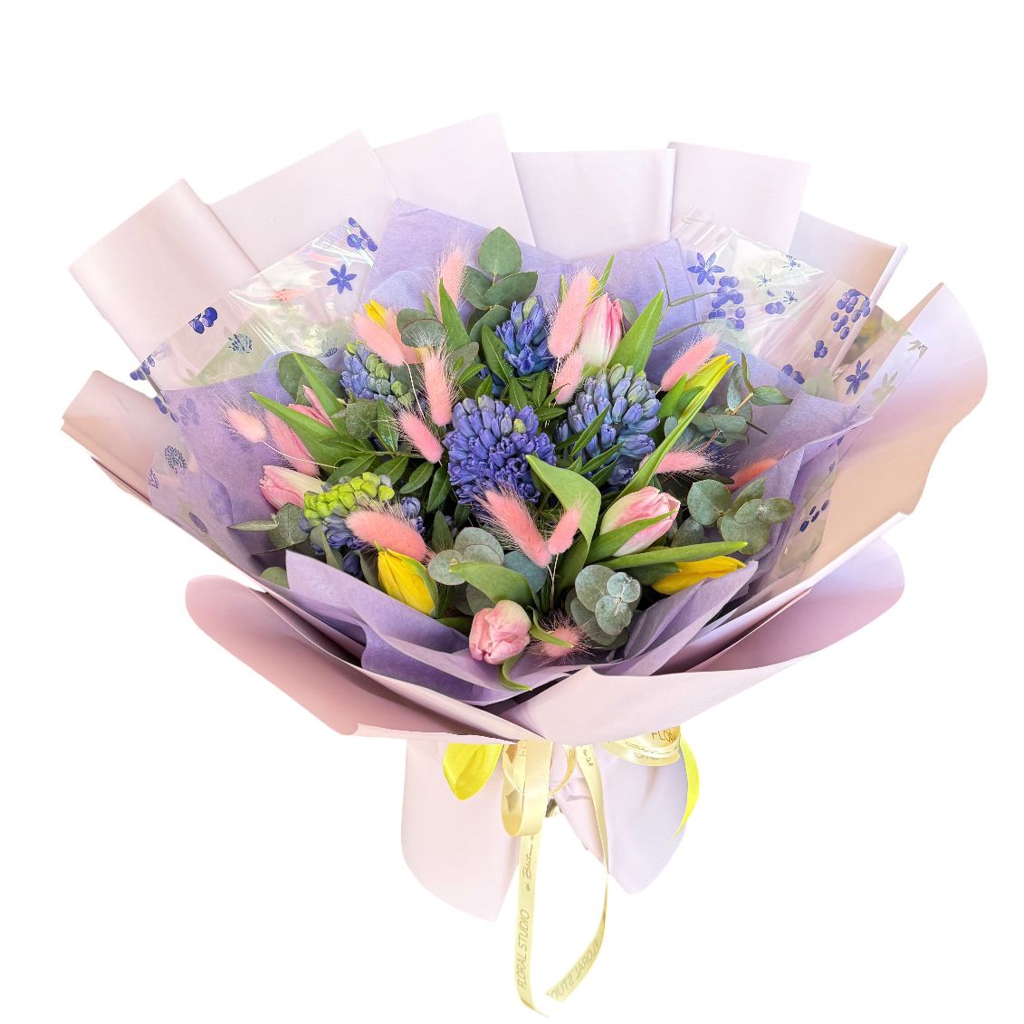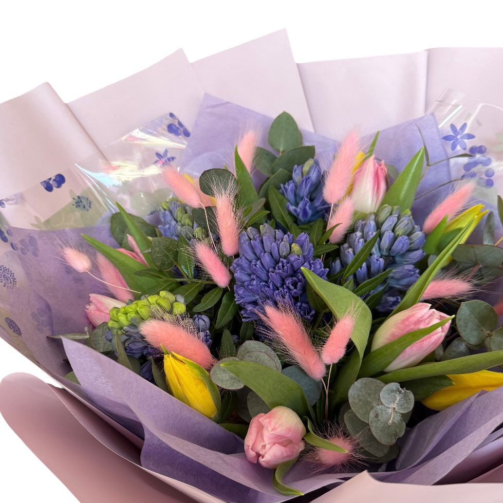 Zambilele mov simbolizează renașterea, lalele roz reflectă dragostea, iar lalele galbene aduc un mesaj de optimism. Combinarea acestor flori în Buchetul Zâmbet de Martie creează o poveste de primăvară plină de emoție și energie pozitivă.