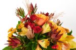 Aranjamentul Îmbrățișarea Toamnei aduce toamna direct în decorul tău prin explozia de culoare și căldură oferită de florile toamnei, simboluri ale bucuriei și ale energiei pozitive! Combinația de texturi și nuanțe calde evidențiază culoarea vibrantă și atmosfera caldă a toamnei!