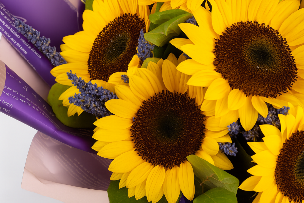 - Floarea soarelui: Aceste flori galbene sunt ideale pentru a aduce o notă de lumină și fericire. Sunt simboluri ale soarelui și ale energiei pozitive, perfecte pentru buchete de vară.